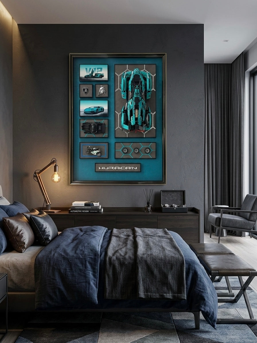 Sublimez votre intérieur avec cette pièce maîtresse unique qui rend hommage à l'ingénierie et au design légendaire de la Lamborghini Huracán. Ce tableau n’est pas qu’une simple décoration, c’est une véritable célébration de la performance brute et de l’élégance italienne.